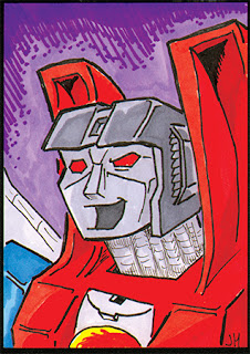 Sketch cards! G1 Starscream, CosmiCat, LEGO Hulk vs Loki, and Triggerhappy! I'll have these and